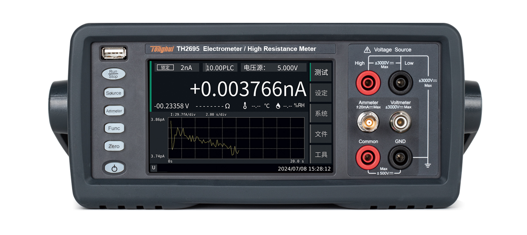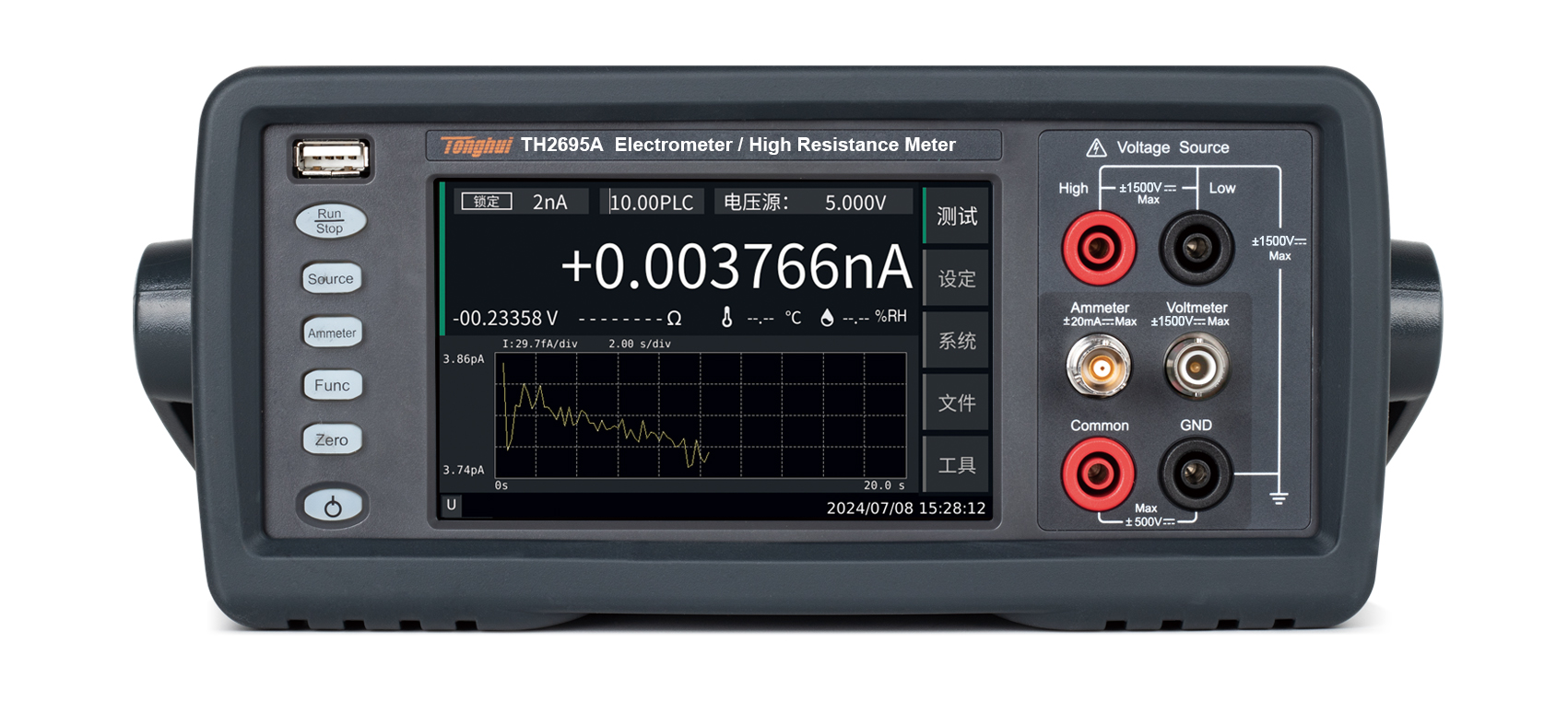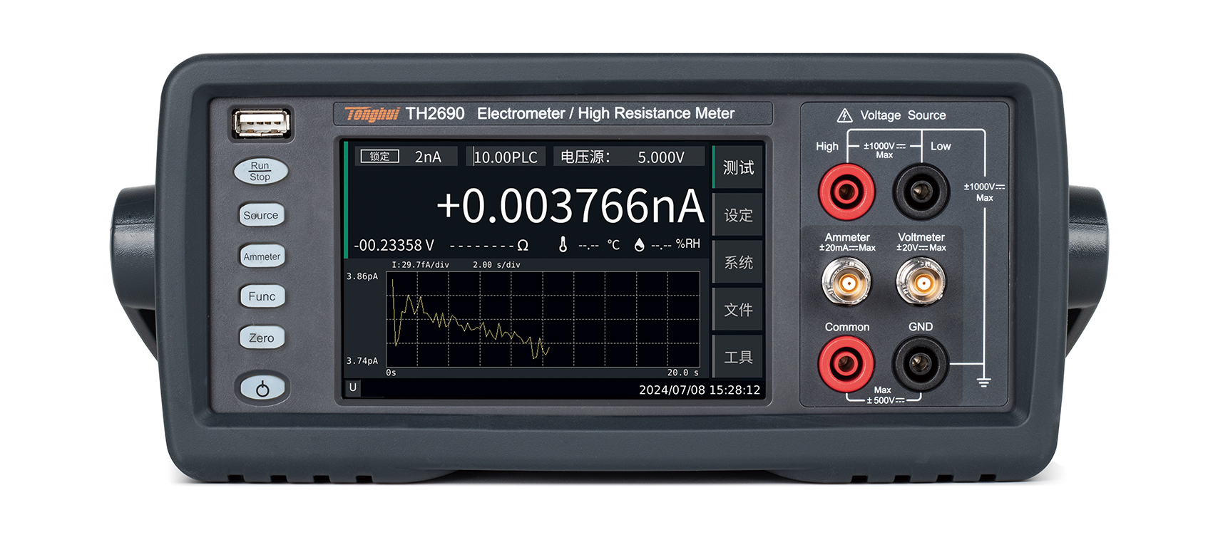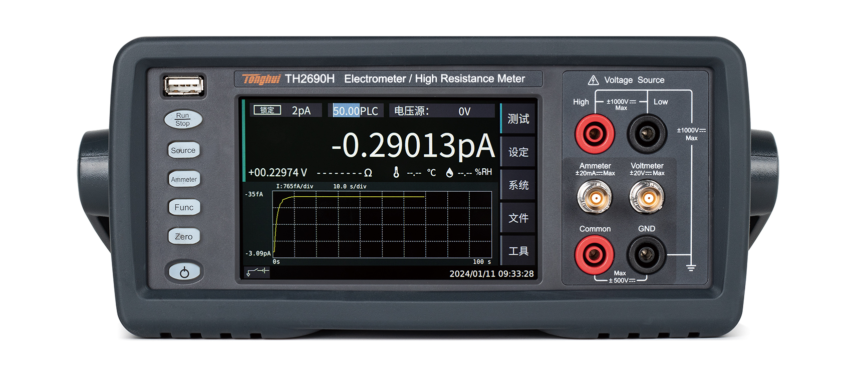 四種測量模式:高阻儀、電壓表、電流表、靜電計