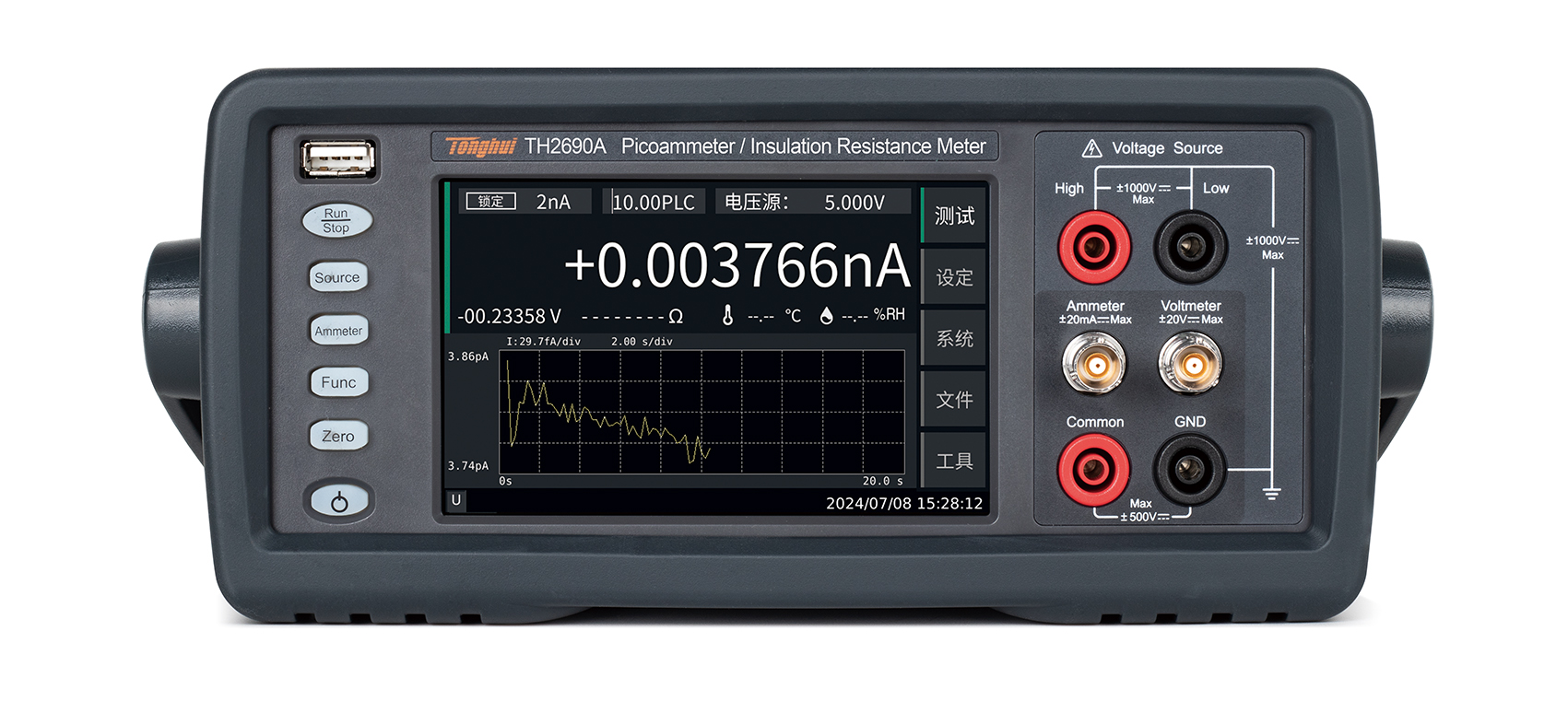 電流量程:2pA-20mA,電流分辨率達0.01fA(10-17A)