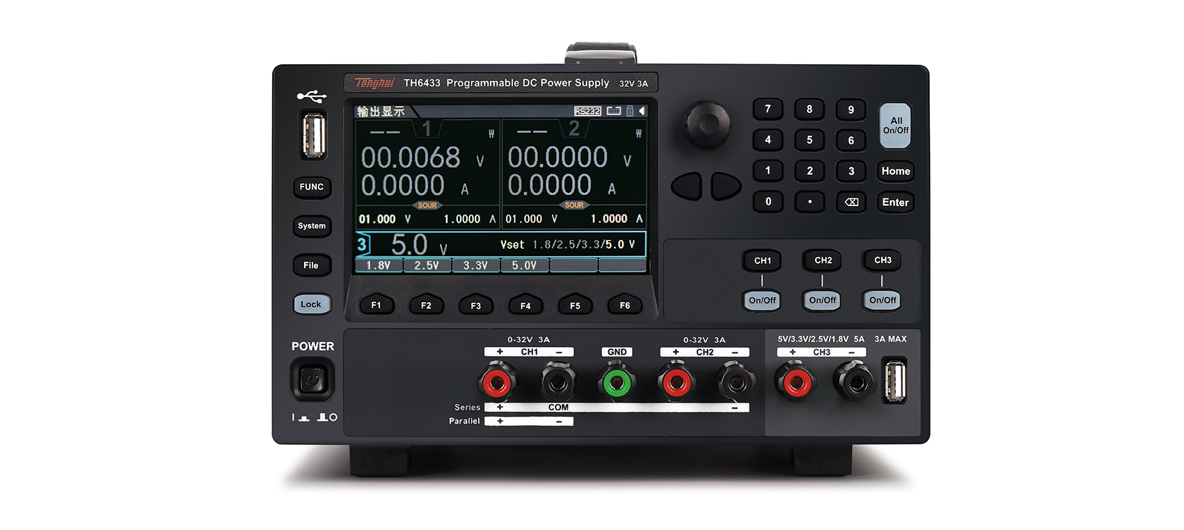 電源模式:CH1/CH2:32V/3A,CH3:1.8V、2.5V、3.3V、5.0V/3A