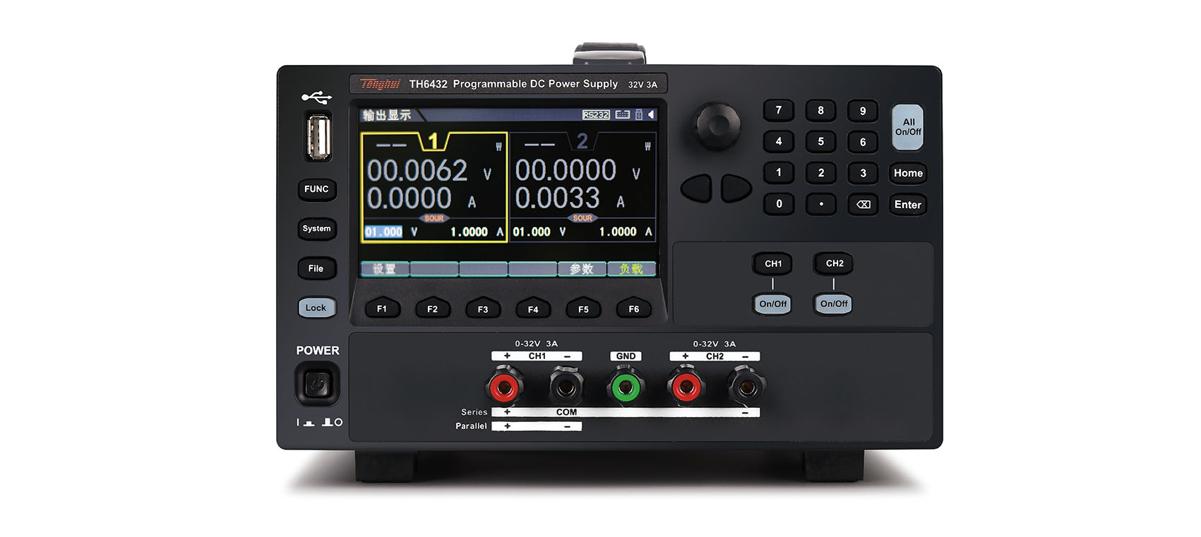 電源模式:CH1/CH2:32V/3A,CH3:5V/1A,CH4:15V/1A