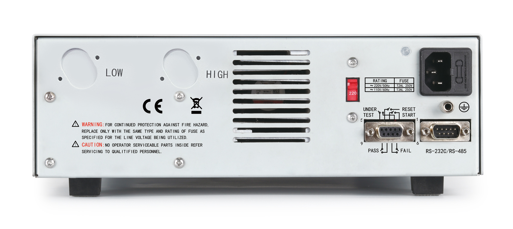 針對高強度測試中,由于測試引線內(nèi)部斷裂、測試工裝接觸不良等造成測試耐壓、絕緣誤判未合格的情況,TH9302C/TH9302D兩個型號在儀器后面板增加了帶CK功能的高壓測試端,保障了儀器測試結(jié)果的有效性和正確性,可以避免由于測試附件和工裝給客戶帶來的誤判損失。