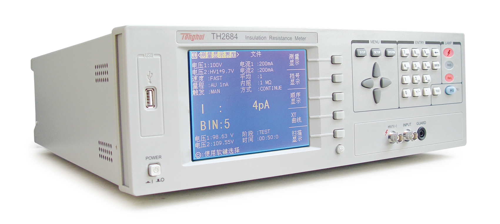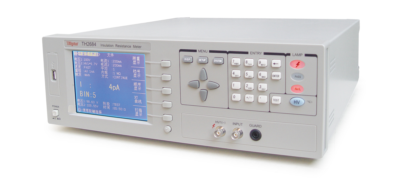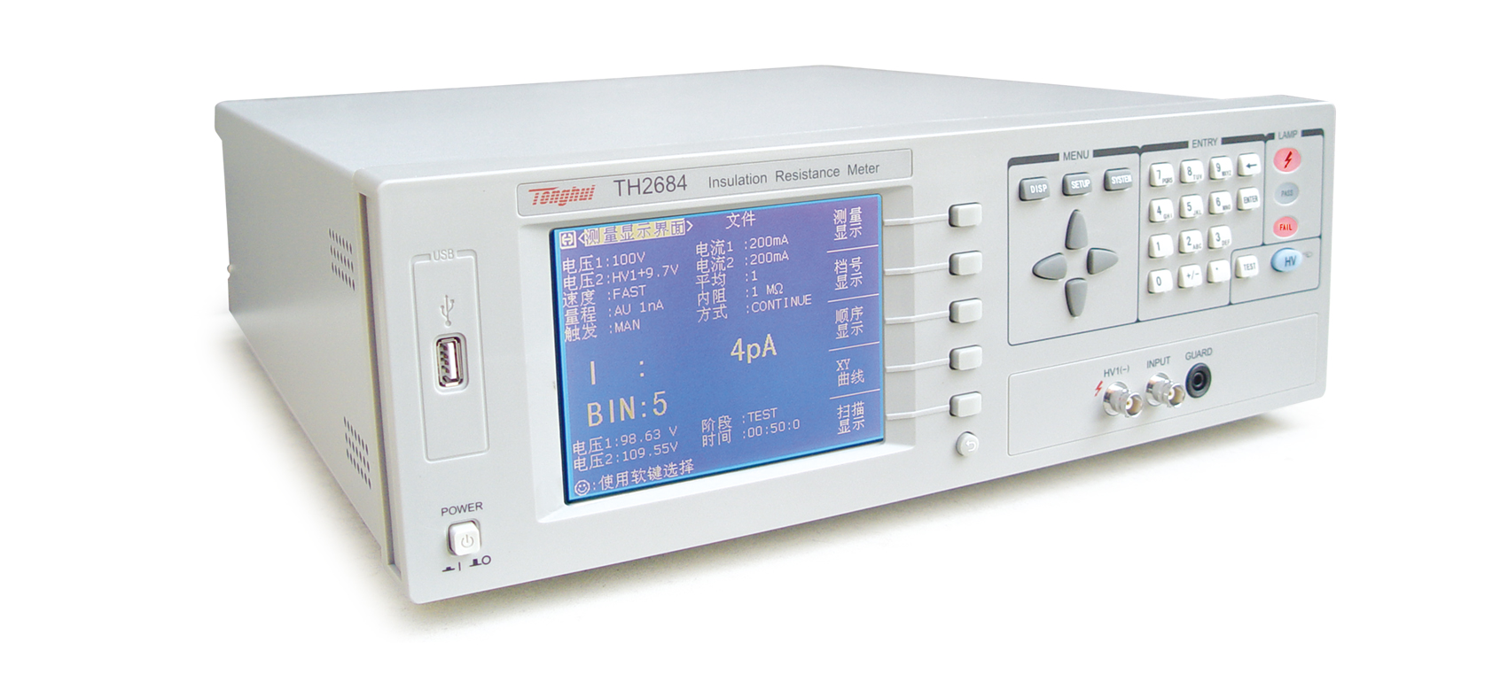 ■ TH2684型高精度絕緣電阻測(cè)試儀是一款能快速測(cè)量電子元器件,介質(zhì)材料,設(shè)備和電線電纜等絕緣性能的智能化測(cè)量?jī)x器。采用大尺寸的液晶,人性化的菜單布局,使用戶可更方便的操作儀器。