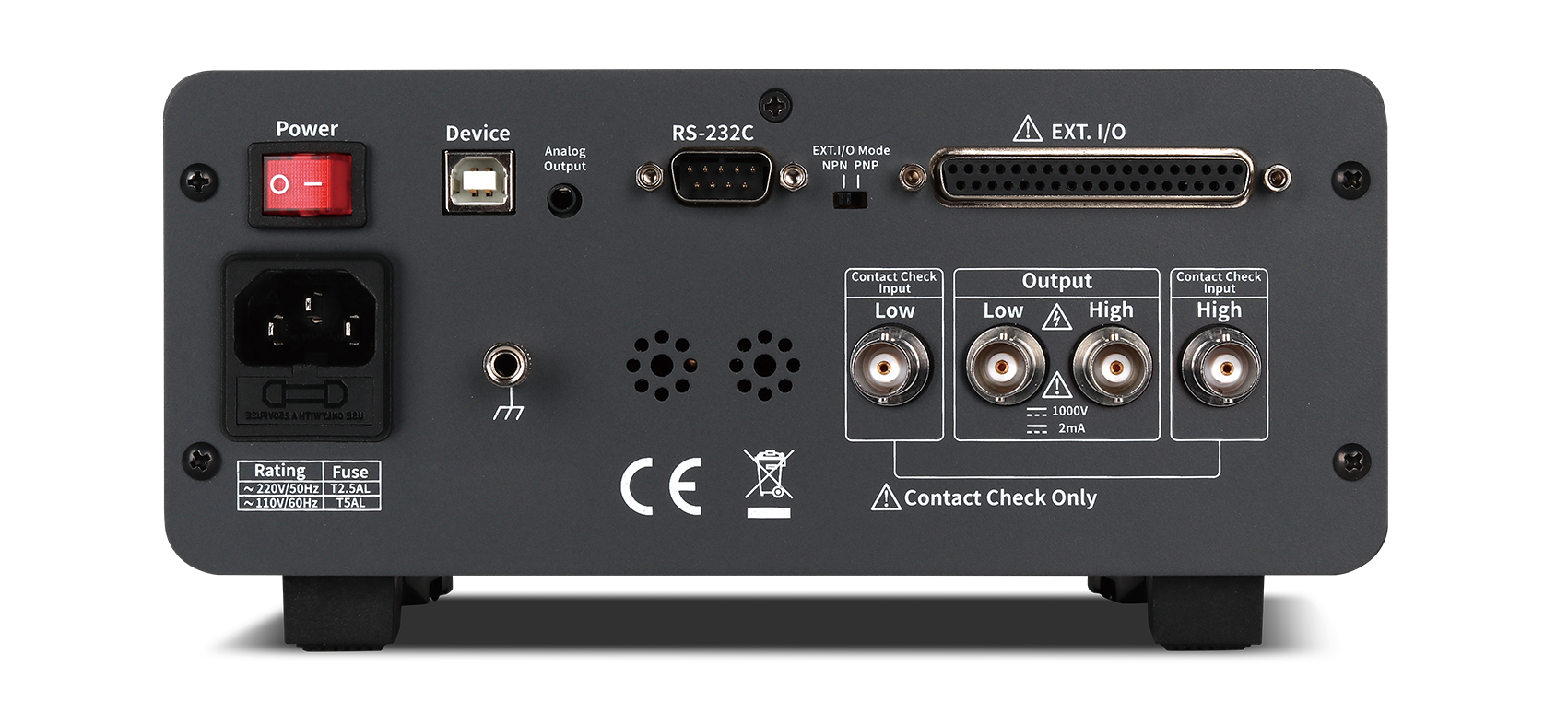 TH2692體積小巧,標準2U高度,前后測試端,標配了RS232C、USB DEVICE、USB HOST、EXT.I/O、Analog等接口,無論上架測試、測試臺還是自動化產線集成,都游刃有余。