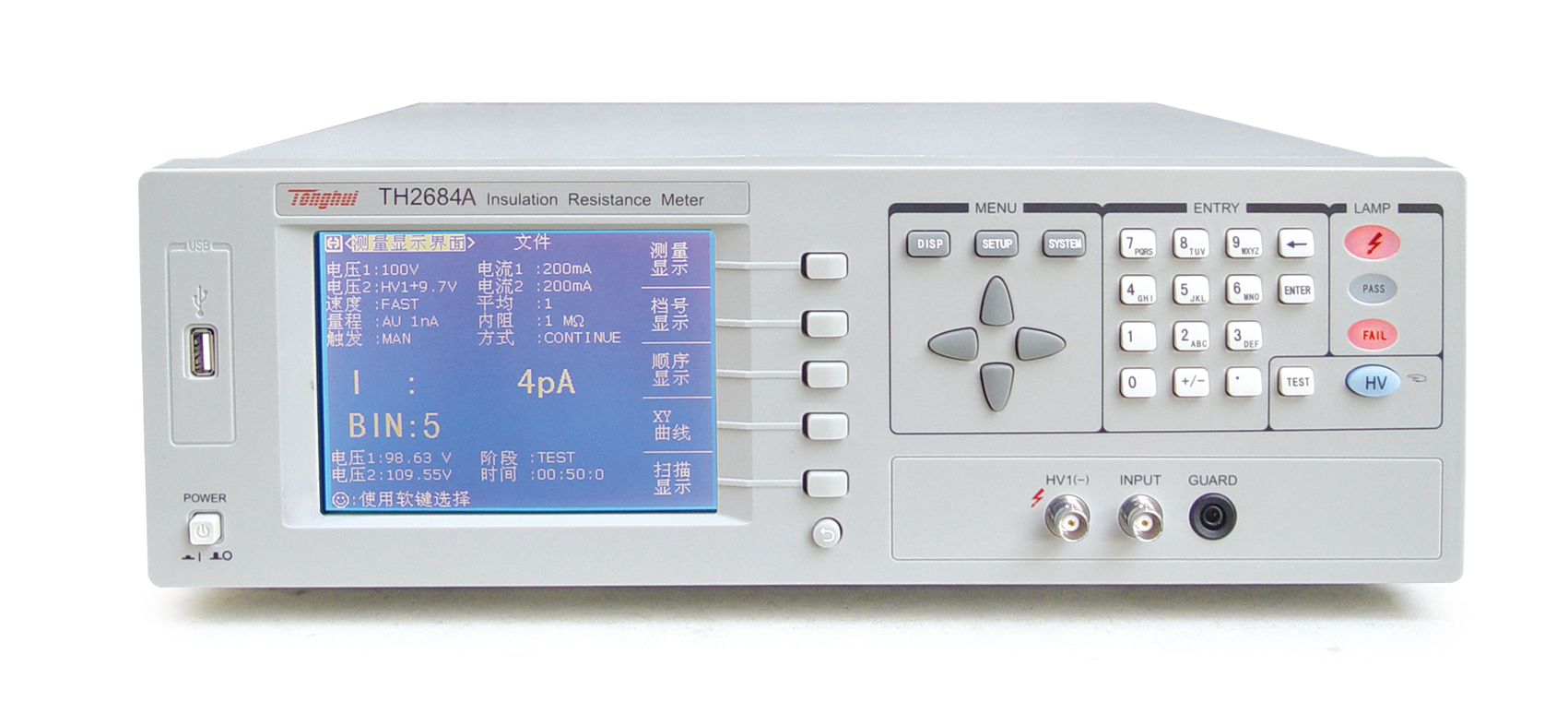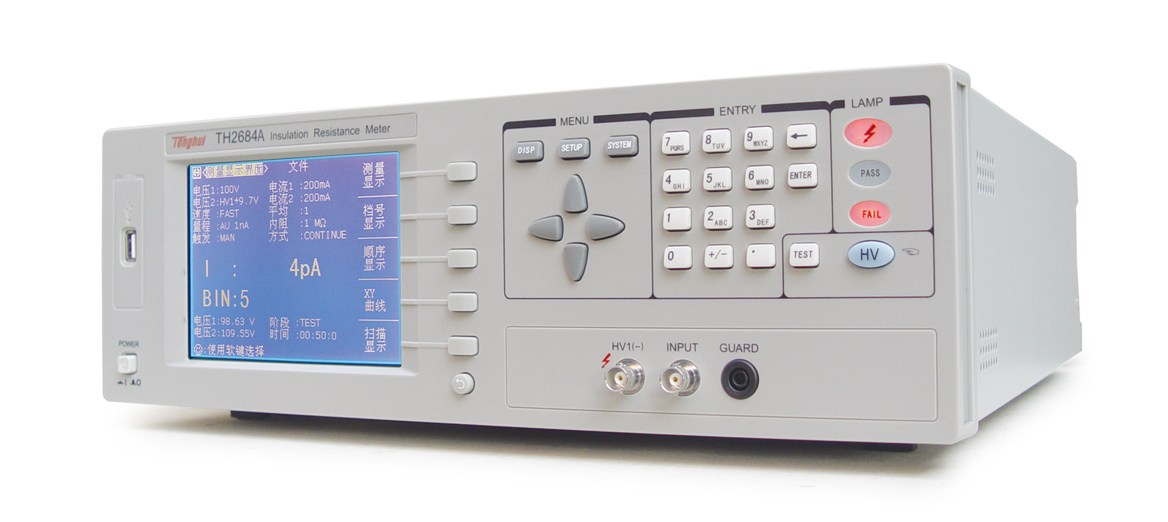 ■ TH2684型高精度絕緣電阻測試儀是一款能快速測量電子元器件,介質材料,設備和電線電纜等絕緣性能的智能化測量儀器。采用大尺寸的液晶,人性化的菜單布局,使用戶可更方便的操作儀器。