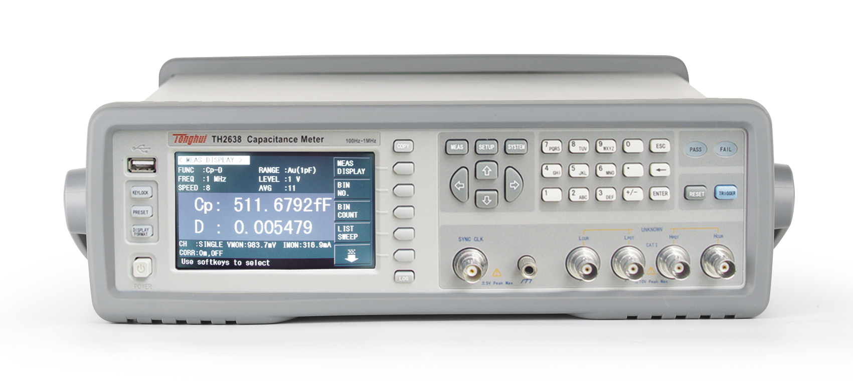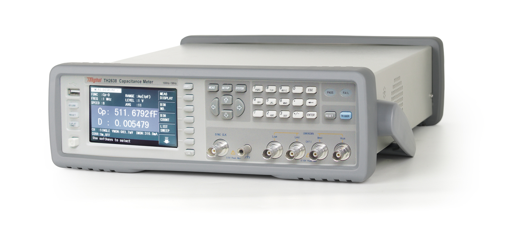 TH2638系列高速精密電容測量儀是具有高達1MHz測試頻率的新型電容測量儀,體積小,緊湊便攜,便于上架使用。4.3寸的LCD屏幕可選中英文操作界面,操作方便快捷。