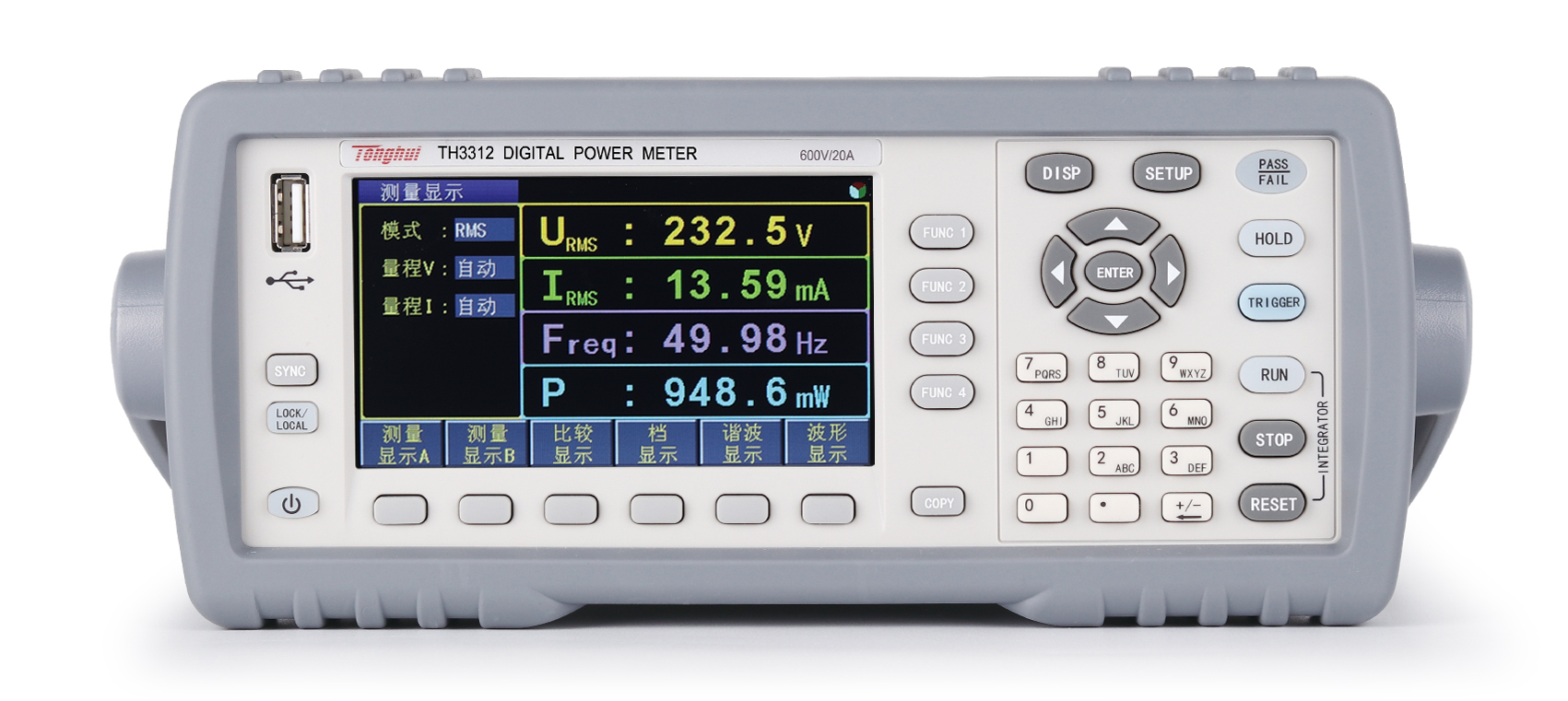 TH3300系列數字功率計采用了小機箱設計,便于機架安裝;配備4.3寸液晶屏顯示,測試功能與測量參數更為豐富,并提供兩種顯示風格界面:數碼管的四窗口顯示;全參數全屏顯示。